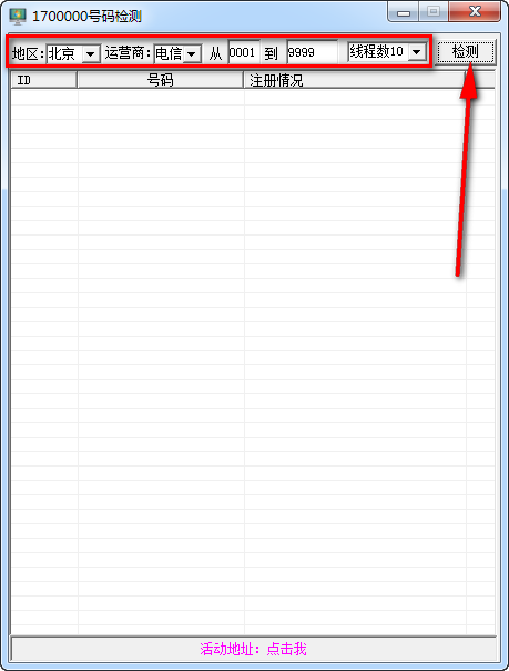 下载后,运行软件,选择地区、运营商和线程数,单击检测即可