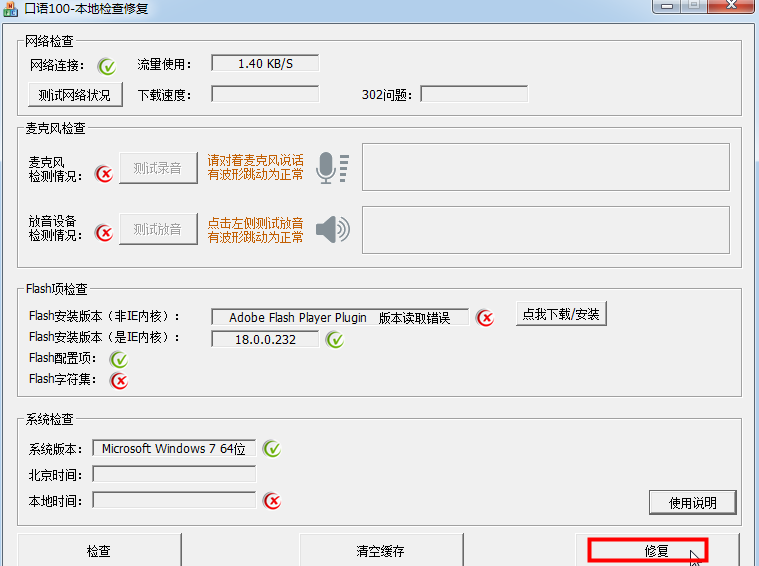 口语100本地检查修复软件使用方法