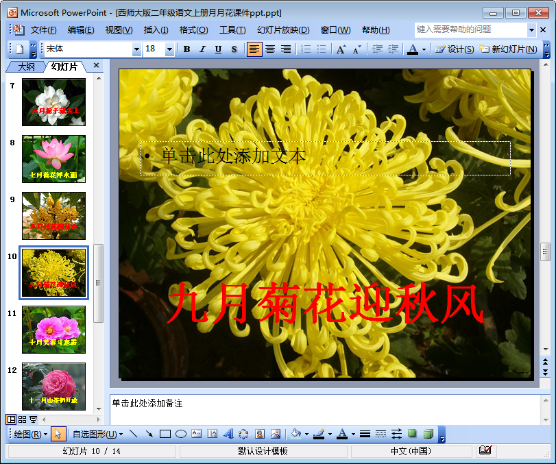 和三字经一样,月月花也是西师大版二年级语文上册第一单元中的一篇课文。在本节内容中东坡小编为大家带来的是关于这篇课文的ppt课件,该课件图文并茂,十分便于二年级的学生理解月月花这篇课文中的一些重难点知识,需要这份月月花课件ppt的朋友只需点击本文相应的下载地址进行下载即可!更多西师大版二年级语文上册课件,敬请关注东坡下载站!