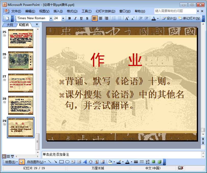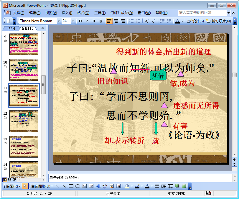 该人教版七年级语文上册课件之论语十则课文教学ppt内容包括详细的原文及翻译等,是一份下载下来即可作为教学课件使用的ppt。该论语十则ppt课件共29页,内容完全免费,如果你需要这份论语十则课文教学ppt的话,只需点击本文相应的下载地址进行下载即可!