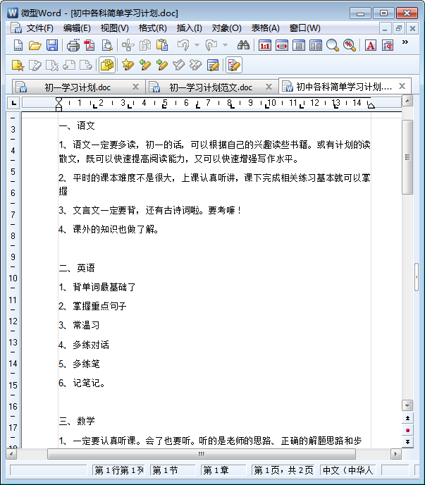 初一是初中的开始,有人说它是人生的第一个转折点——不管你人不认同,总之,它在初中阶段的学习中扮演着非常重要的角色。那么如何在初一阶段为整个初中的学习打下良好的基础呢?如果你还不是很确定的话,那么不妨来看看这份doc格式word版初一学习计划范文合集吧!相信你会从中获得启发的哦!