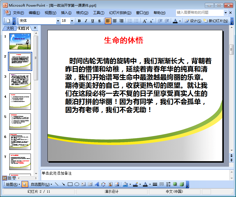 时间齿轮无情的旋转中,我们渐渐长大,背朝着昨日的懵懂和幼稚,延续着青春年华的纯真和清澈,我们开始谱写生命中最激越最绚丽的乐章。期待更美好的自己,收获更热切的愿望。就让我们在这段必将一去不复的日子里享受真实人生的颠泊打拼的华丽!因为有同学,我们不会孤单,因为有老师,我们不会无助!