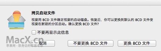 单击恢复后,会提示是否更换BCD文件,如果你没有对Win系统进行引导自定义(大多数情况),选择“更换BCD文件”即可。