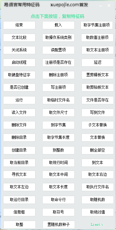 易语言特征码基本上经常需要调用,如果靠脑子记,记极个别还行,多了就记不下来。于是就有人收集、整理了易语言特征码,并制成了一款小工具,方便调用,如果需要就来试试吧!