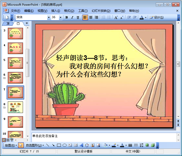 可是,想完了所有的之后,我最最喜欢的还是——我自己现在的房间。在这里,我可以读书,可以幻想。