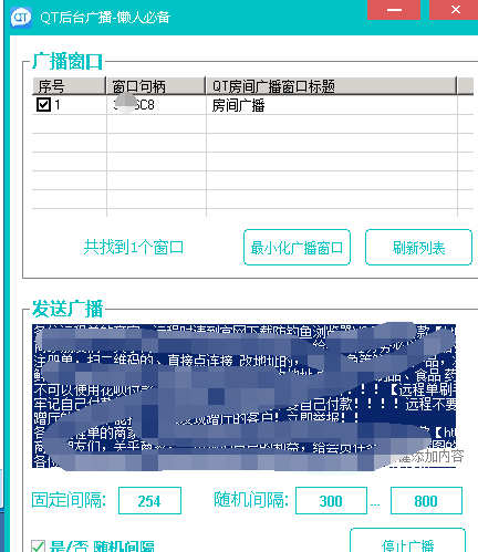 QT后台广播工具就是一款针对于QT聊天的自动广播软件。这款最大的特点就是不需要手动连续输入相关的话,而是只需要设置好要说的话与时间,就能够自动进行发广播,从而节省大量的手动操作精力与时间!