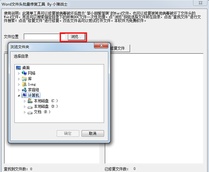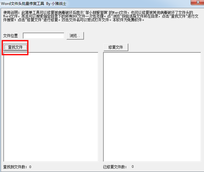 word文件头批量修复工具就是一款十分小巧的word文件修复软件。它是专门解决word文件被“邹小朋爱邹琪”病毒感染的问题,更能够修复其他病毒破坏了文件头的Word文件,以此来让你的word文件正常运作!