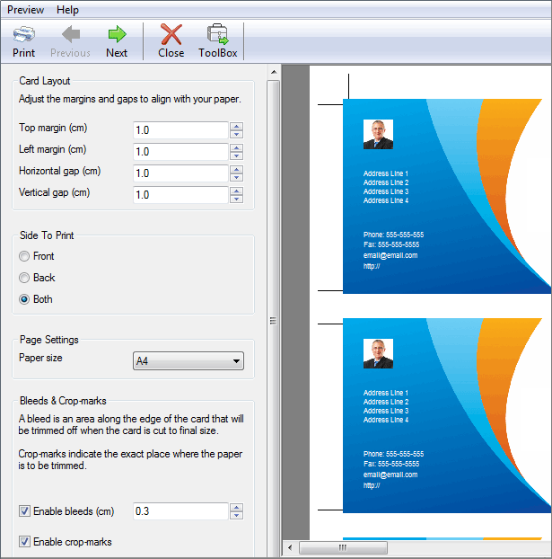 打印你的名片staight从应用程序,或者另存为一个PDF文档,需要设计一台打印机。