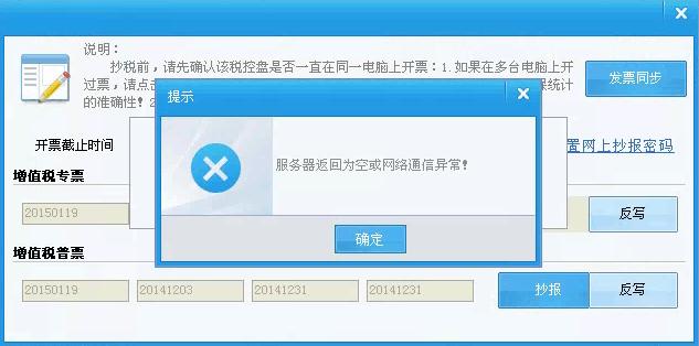 5.抄报过程中报“非法XML文档:服务器返回为空或网络通信异常”如何处理?