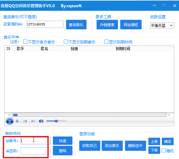 支持快速登录,支持添加、删除、随机自己空间音乐。支持网址缩短功能等。