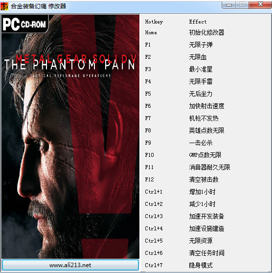 合金装备5幻痛全版本十九项修改器是一款非常不错的游戏修改器。功能十分强大,让你时时刻刻处于无敌的状态。有需要的可以来东坡下载使用!