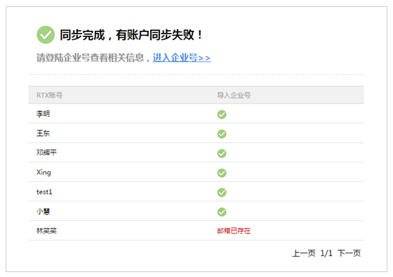 1.一键同步通讯录,轻松将RTX组织架构同步到企业号。