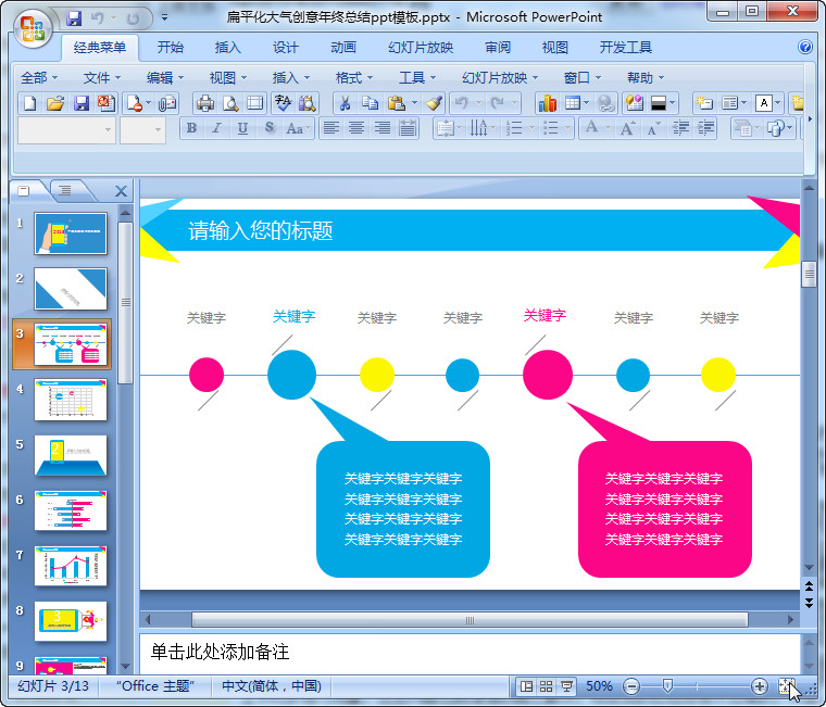 2015年度总结工作汇报模板是一款扁平化的动态的非常精美又大气的模板哦。有图表,背景也很大气,对于要做年终总结报告的朋友们来说,实在是不错哦。