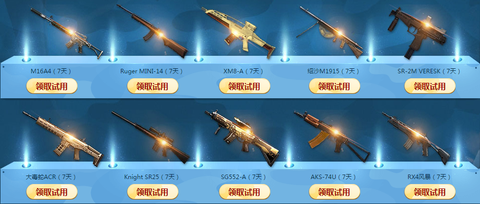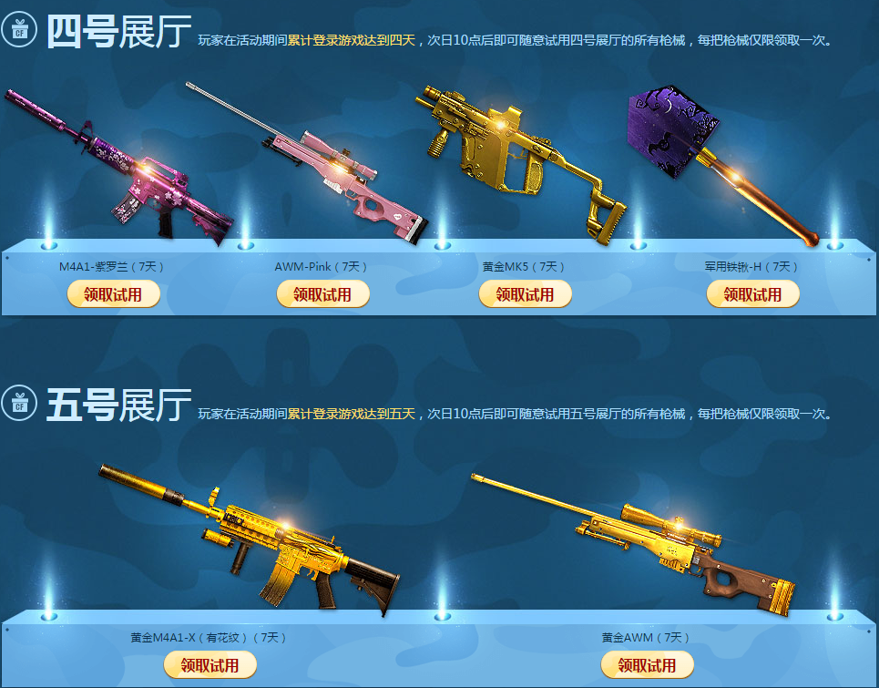 领取装备都需要达到一定的条件,一号展厅的枪械都可以直接全部领取,但是都没什么亮点