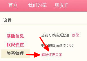 QQ情侣解除绑定关系:进入QQ情侣后,点击导航上头像边“设置”,然后选择“关系管理”下的解除情侣关系即可。