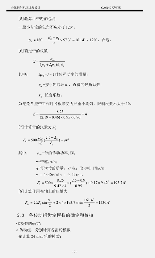 2.3 各传动组齿轮模数的确定和校核 .................. -7-