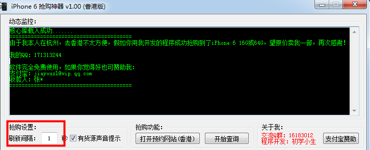 虽然还有半天就是iPhone6s的正式发布日子,但小伙伴现在心情已经开始不淡定了吧,如果你实在想要第一时间获得手机,那么这时就要选择iphone6s抢购神器,不需要太多操作,就能全天24小时监控香港官网情况,帮助你最快订购手机!