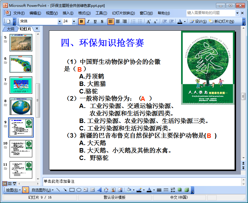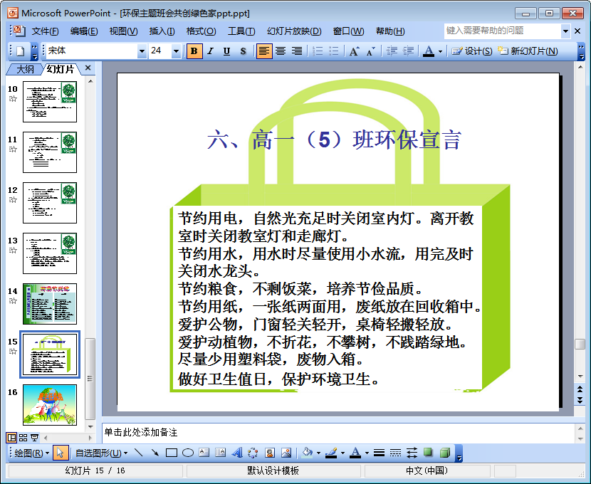 这份环保主题班会共创绿色家园ppt共由15页组成,适合作为高中阶段的环保主题班会课件。该ppt课件图文并茂,内容发人深思,具有很强的教育意义。下文是关于该环保主题班会ppt课件的内容摘选及预览图,如果你需要下载使用该课件的话,只需点击本文相应的下载地址即可进行下载哦!
