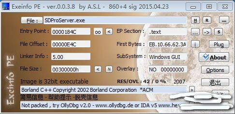 查壳 Borland C++ Copyright 2002 Borland Corporation *ACM 无壳阿