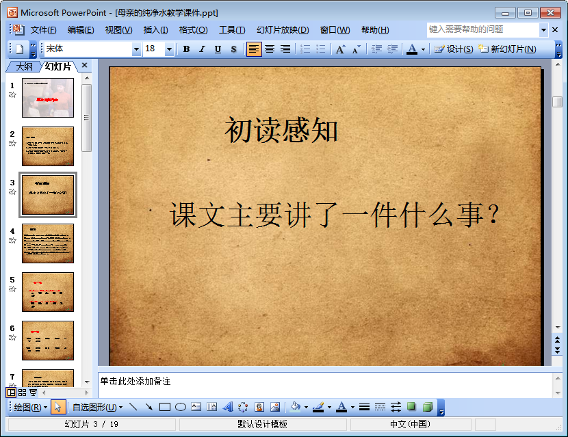 该北京版语文六年级下册第五单元母亲的纯净水课文教学课件ppt(以下简称母亲的纯净水ppt)共由19页组成,是一份内容完整且十分优秀的ppt课件,课件主要围绕“学习生字及新词,能够结合课文内容体会重点语句的意思”、“能对文中人物进行评价,并且写下来。”、 “能体会到母亲在细微处对子女的关爱,懂得要树立信心,把握自己的命运。”三大教学目标展开,如果你需要这份课件的话,只需点击本文相应的下载地址进行下载即可!