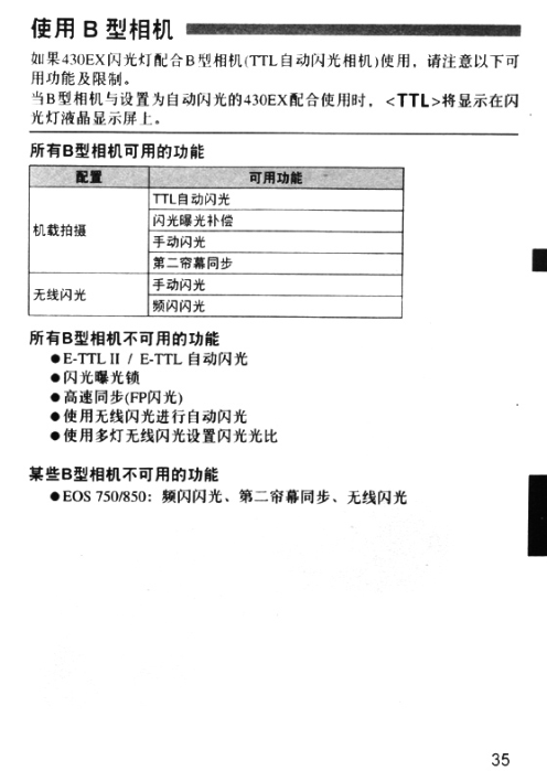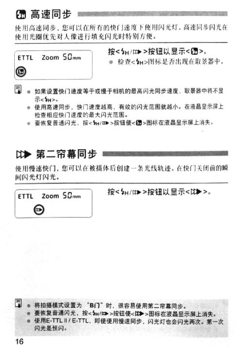 具有E-TTL II、E-TTL、TTL、M闪光模式。