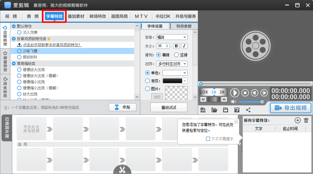 爱剪辑好莱坞特效(字幕特效下载)怎么用