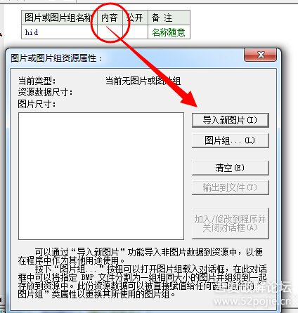 然后会出现如上图所示的内容,这是我们在昵称这行输入hid(其他名称也可,这个无所谓),然后双击“内容”弹出一个窗口,这是我们点击导入新图片
