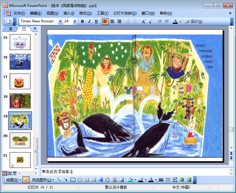 这是一份由21页组成的我家是动物园ppt——该ppt课件详细全面地将我家是动物园绘本故事进行了讲解与描述,十分适合作为教学课件使用,下文是该绘本故事的内容节选及预览图,如果你觉得这份ppt能为你的教学提供帮助,那么就赶紧来东坡下载吧!