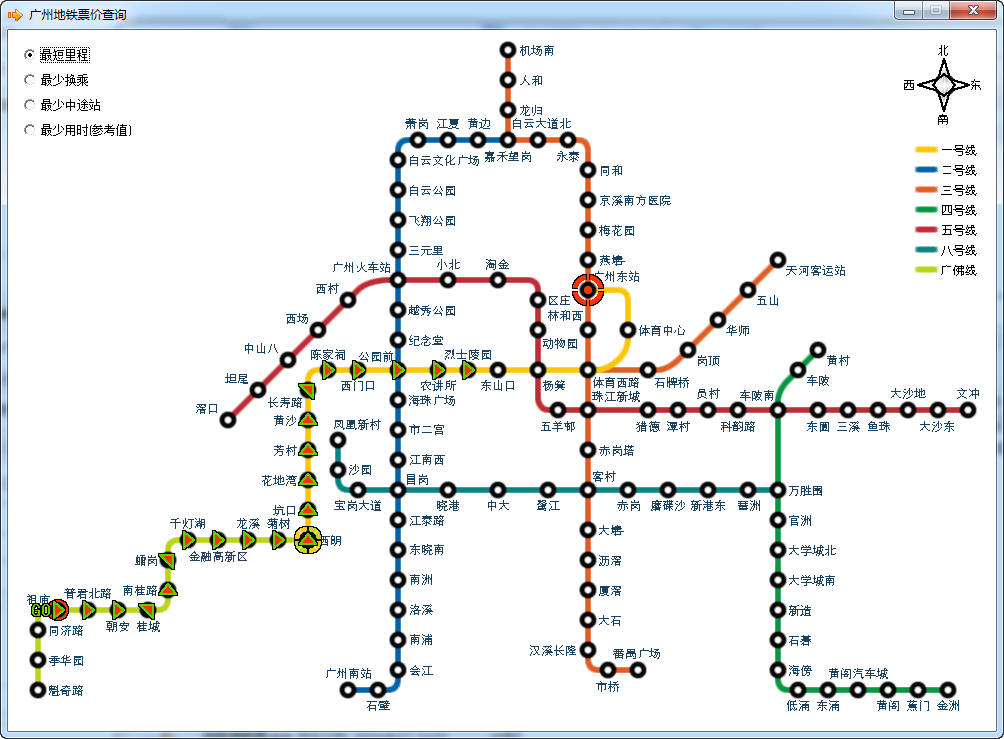 可以查询最短里程、最少换乘、最少中途站、用时最少