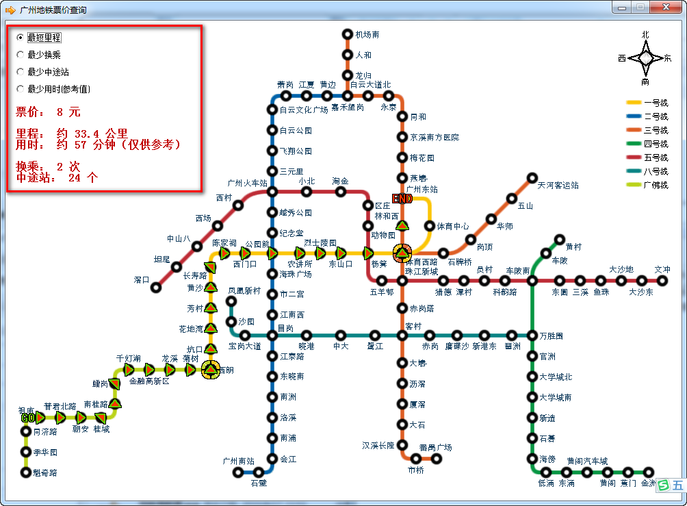 显示票价、里程、用时、换乘、中途站等等数据信息。