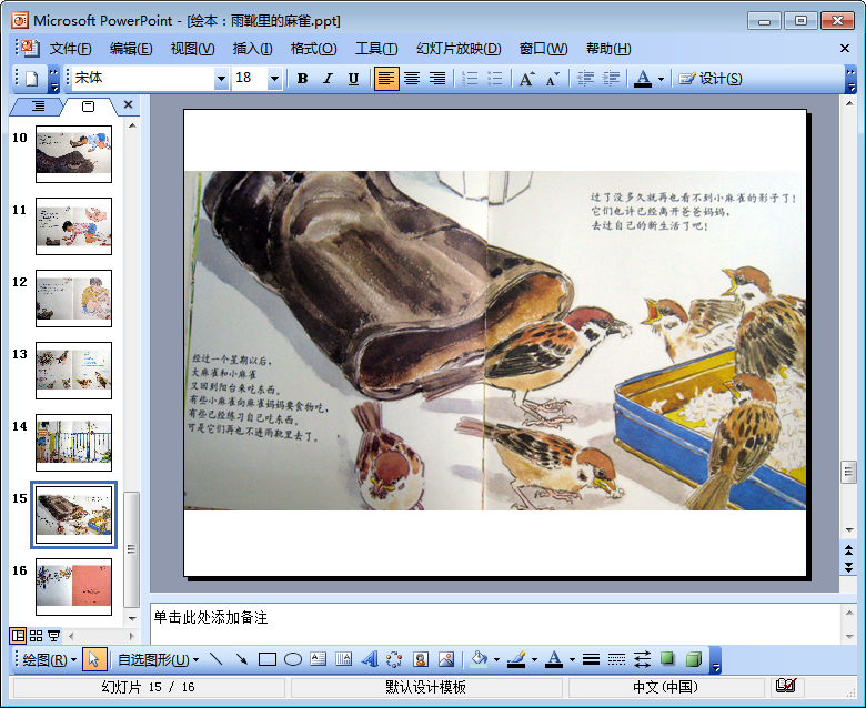这是一份免费完整电子版雨靴里的麻雀绘本故事ppt,ppt共由16页组成。下文有该绘本故事的内容摘选及ppt预览图,如果你需要这份雨靴里的麻雀绘本故事ppt的话,只需轻轻点击本文相应的下载地址即可进行下载哦!希望这份ppt能对大家有所帮助!