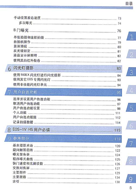 佳能1v说明书内容截图