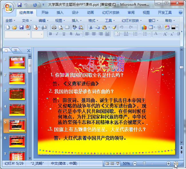 2018大学生国庆节爱国主题班会PPT模板摘录
