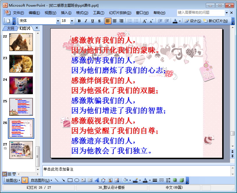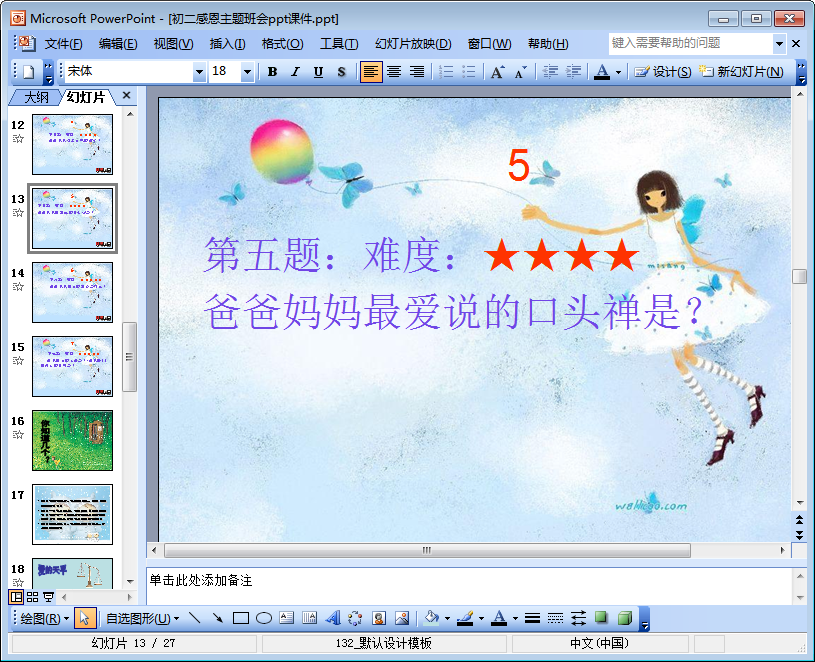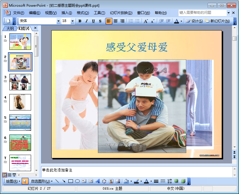 适合作为感恩主题班会课件进行使用的ppt本站有很多,比如说大学生感恩主题班会课件、感恩班主任主题班会ppt课件、感恩老师主题班会ppt课件等等,而在本节内容中东坡小编为大家整理带来的则是一份适合初二课堂进行使用的感恩主题班会ppt课件——感恩父母,拥抱亲情。如果你想要查阅该ppt全部内容的话,只需点击本文相应的下载地址进行下载即可哦!