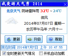 我爱游天气秀是一款全中文桌面天气预报查询软件,可以帮助你查看这几天的天气,让你出门可以做好充足的准备,有需要的赶紧来下载使用吧。