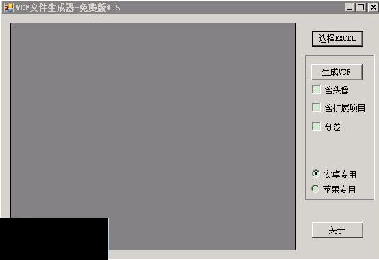 Vcard(vcf)文件生成器将EXCEL文件的通讯录转换成vcf文件,可以直接在android系统的手机通讯录导入。支持工作单位、职位、单位地址、网址、传真、家庭地址、qq号码的导入。
