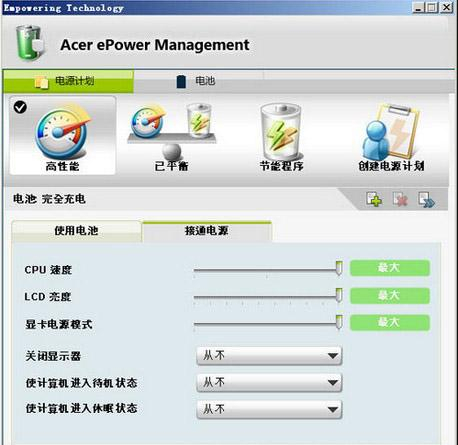 宏碁电源管理软件是宏碁为旗下笔记本产品提供的一款电源管理软件,这款软件可以帮助用户调节笔记本CPU和显卡的频率、LCD的亮度,开关无线网卡、IEEE1394、读卡器等接口,这样可以帮助你的电脑能在不同环境下使用不同的电源方案,以此来延长电池寿命。