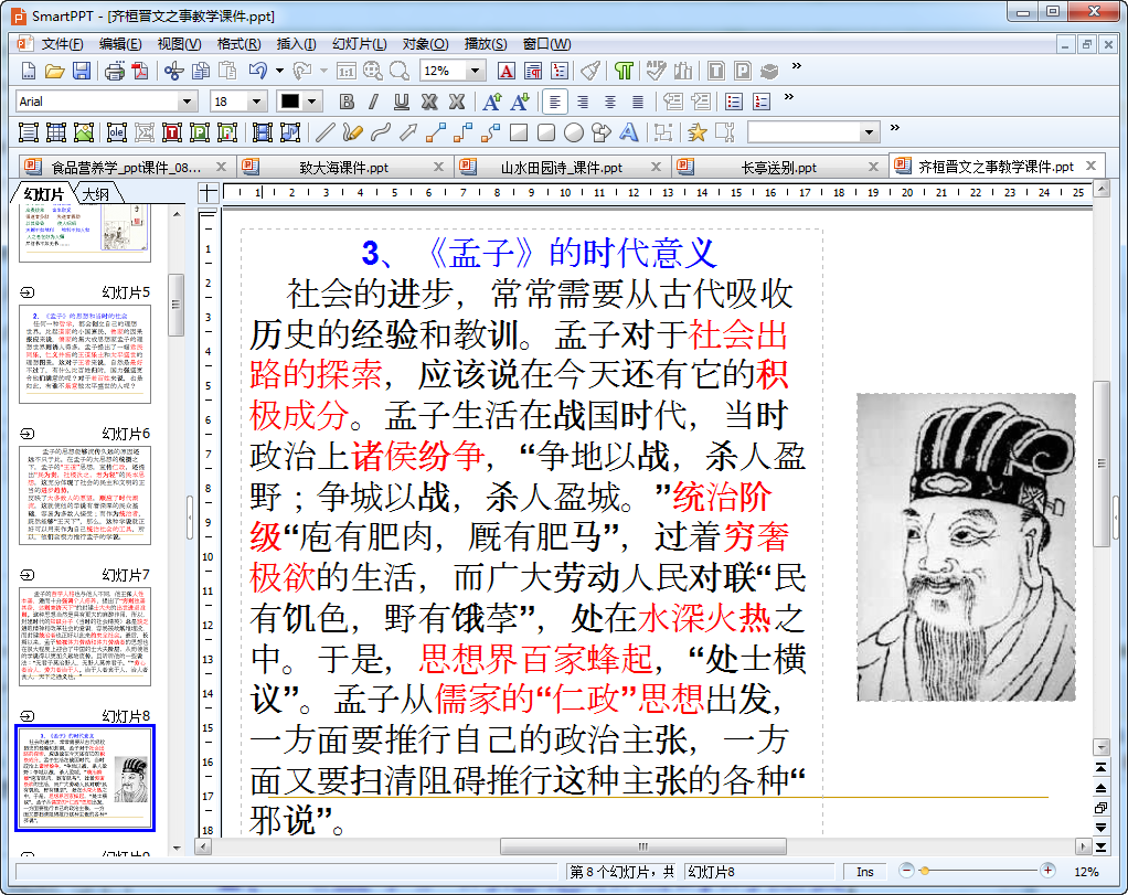 这是一款教学用的PPT课件,讲述了当时的时代背景以及《孟子》这部文集的深渊意义,对课文齐桓晋文之事的讲解也十分到位,有需要的可以来下载这篇齐桓晋文之事ppt!