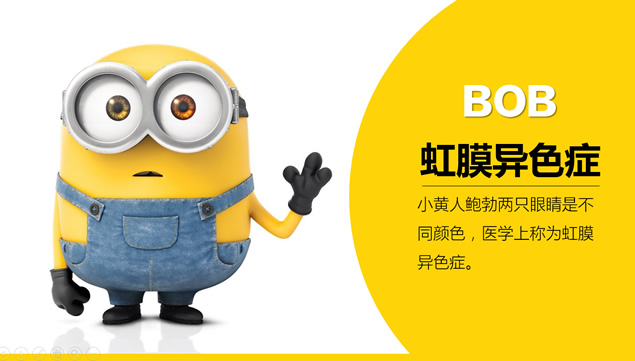 小黄人鲍勃两只眼睛是不同颜色,医学上称为虹膜异色症。