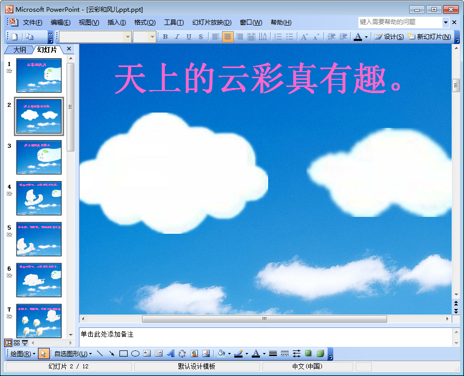 你可以说云彩和风儿是一首散文诗,你也可以认为云彩和风儿是一个绘本故事,总之它是一部非常适合小朋友们进行阅读理解的作品。本节内容东坡小编为大家整理带来的是一份完整免费版云彩和风儿绘本教学课件——由12页组成的云彩和风儿ppt,希望对大家有所帮助!