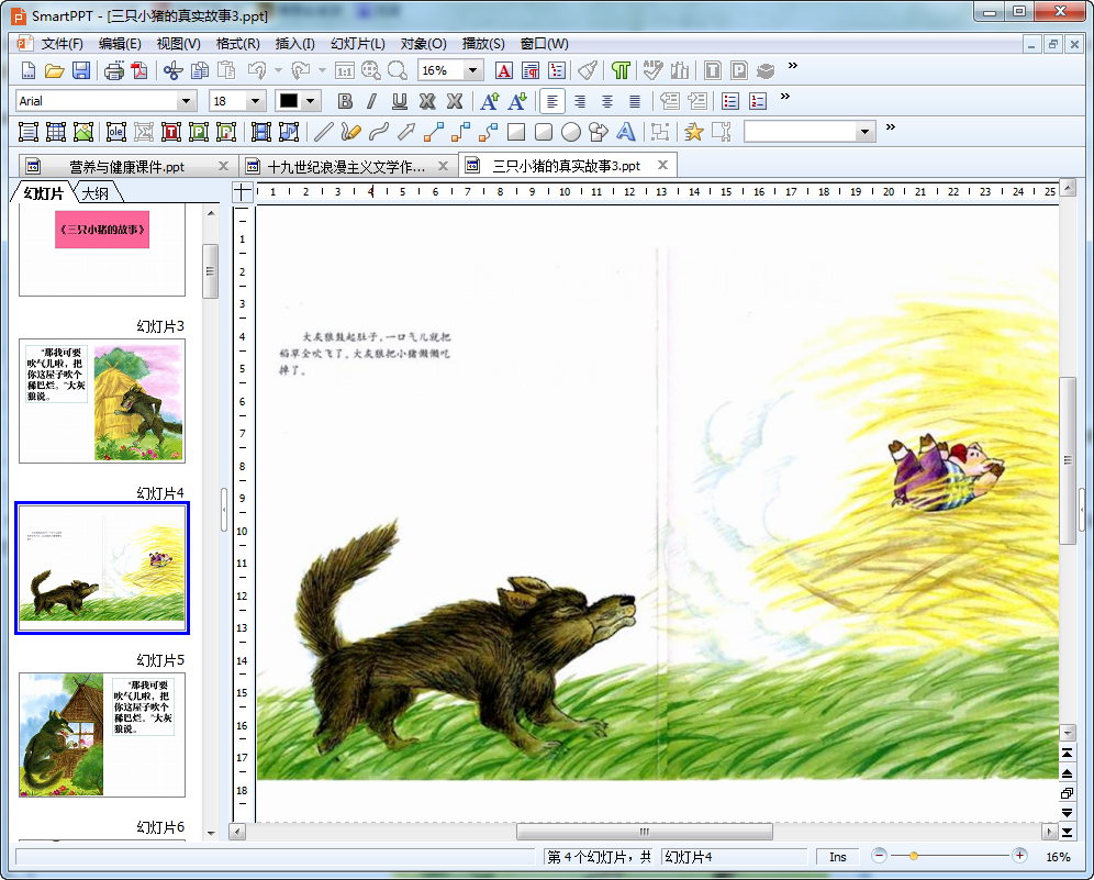 这是三只小猪的真实故事ppt,画面简单趣味性很高十分适合小朋友们,用比具匠心的方法来教育孩子们来看待问题,该ppt共有40页,有需求的可以来下载这篇三只小猪的真实故事绘本!