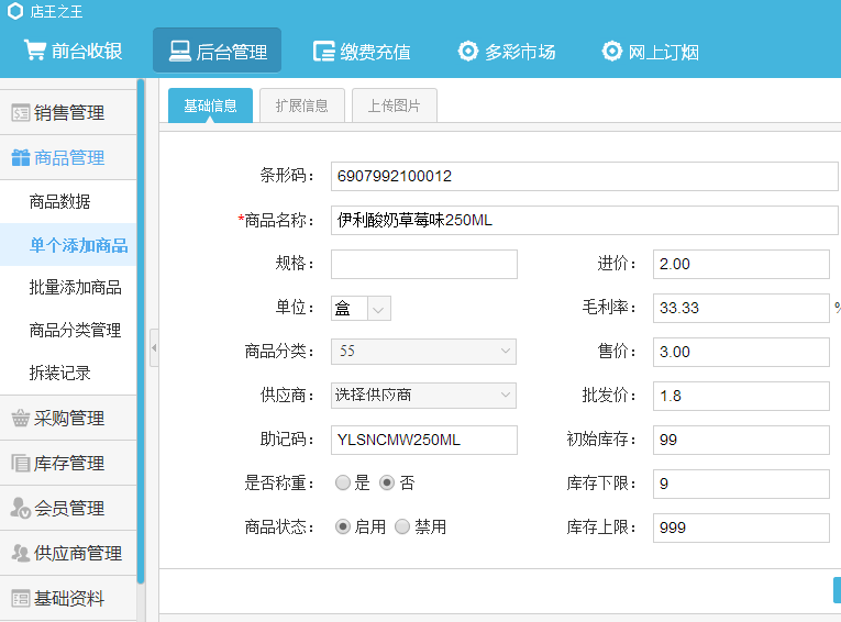 店王之王进销存简单好用,让您抛弃手工账本,进入软件管店,节省经营成本,提高营业效益。同时丰富的应用中心为您提供更多便民服务,包括多彩进货,缴费充值,网上订烟等。