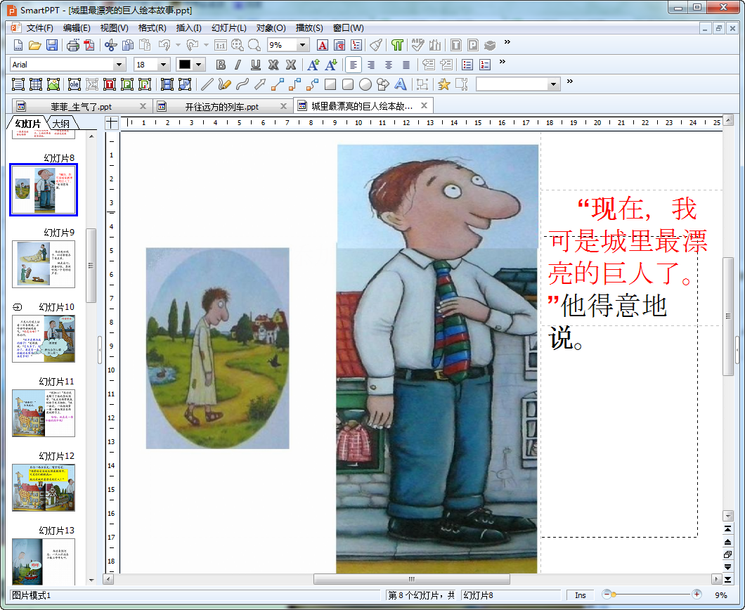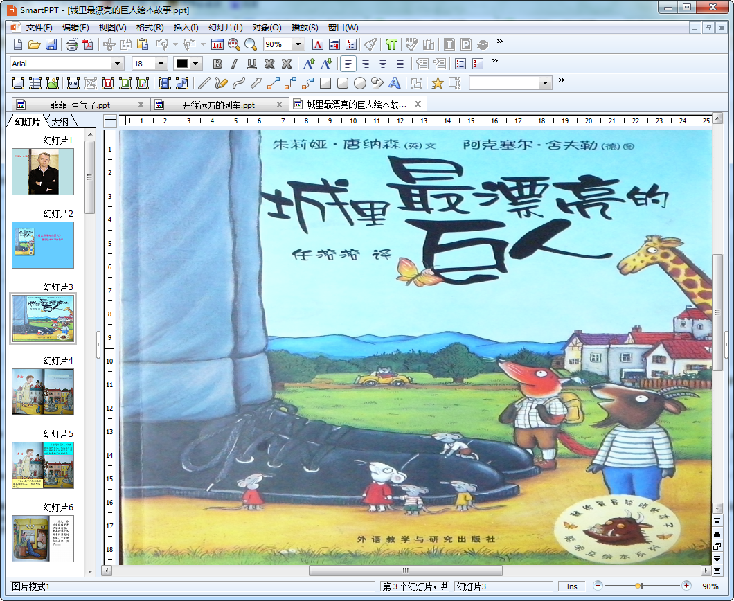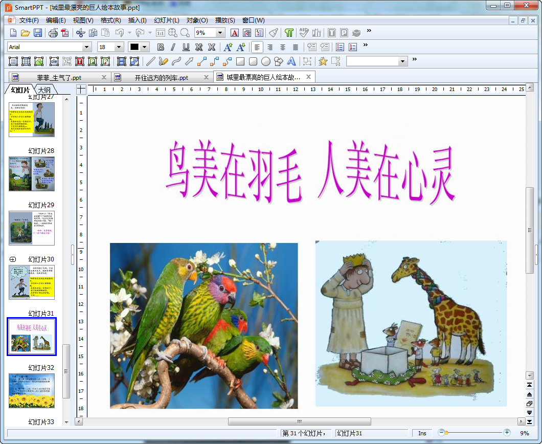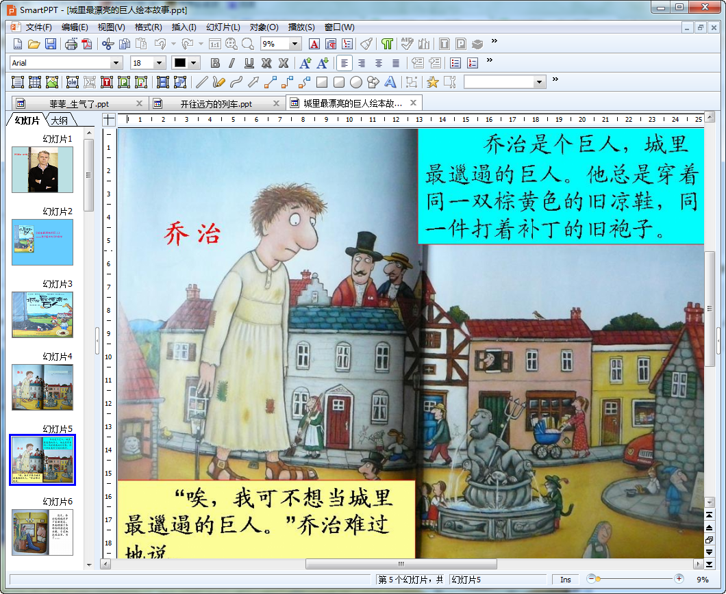 这是一篇城里最漂亮的巨人绘本教案ppt,该绘本讲述了乔治打扮的漂漂亮亮出门但是途中却遇到各种碰到困难的动物们,最后乔治帮助了它们但是自己确只剩下大裤衩回来,最后动物们却一样的觉得他是最漂亮的巨人还送给他一座皇冠,该绘本能告诉孩子们人心里美才是真正的美,有需要该ppt的老师家长们可以来下载!
