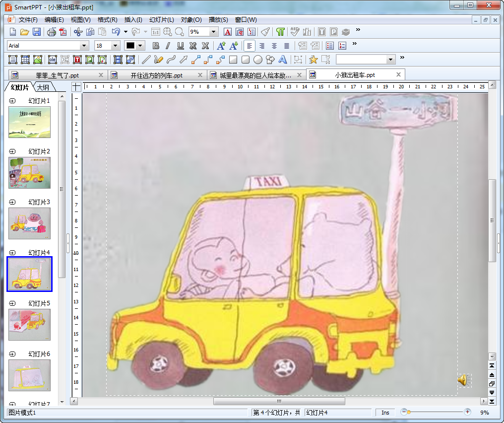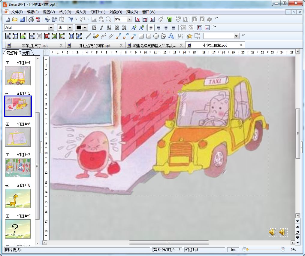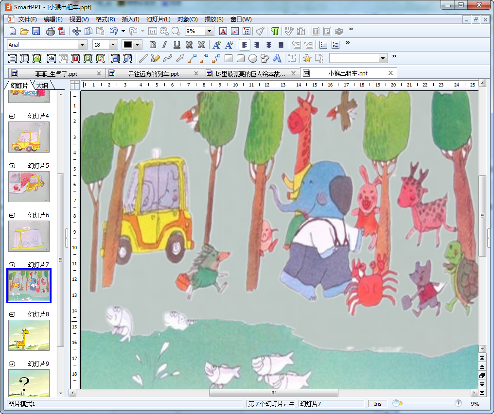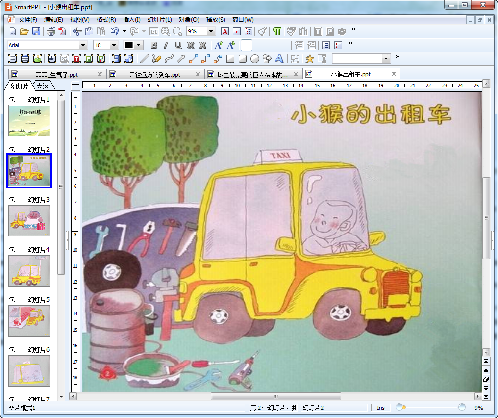 这是一篇小猴的出租车故事ppt,讲述了小猴买了一辆出租车之后森林发生的一系列的变法,该故事简单有趣比较好懂,本ppt内存不大仅有10页但是能够让学生们体会到要养成乐于助人的好习惯,对该类型ppt有兴趣的老师们可以进来看看!