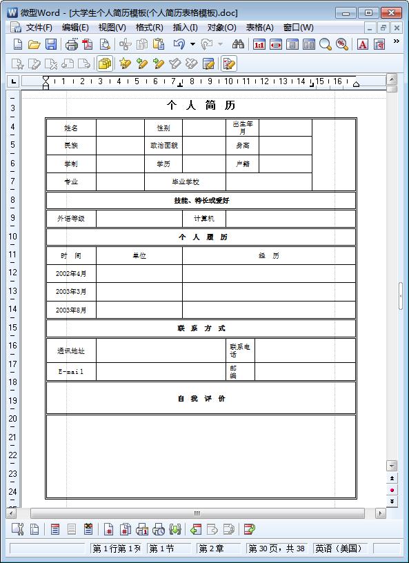 大学生个人简历应该怎么来写呢?如果你被这一问题所困扰的话,除了可以参考一下本站的标准的个人简历表格之外,你还可以来看看这份小编为你精心整理带来的这份doc格式word版的大学生个人简历模板哦!小编在此需要说明的是,下载这份大学生个人简历模板文档之后,除了大学生个人简历模板之外,你还会看到一些不错的简历参考模板哦!欢迎有需要的朋友们前来下载!