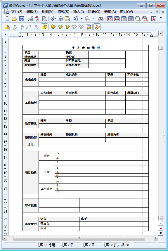 大致上就是这些内容,这些就是简历的一个框架,内容根据你自身的情况往里添加就可以了。