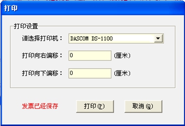 在这里选好打印机,设置好打印的偏移位置,然后点“取消”按钮,不打印当前发票;点“打印”按钮,系统接着提示: