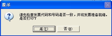 先放好发票到打印机上,点“是”按钮打印当前发票;点“否”按钮取消打印。