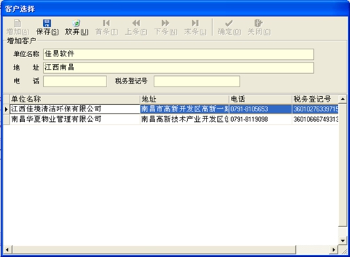 可以通过直接输入客户的某个或多个属性,比如“单位名称”中的部分信息来快速查找定位,选中一条客户记录后,点“确定”按钮取得客户信息。