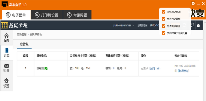 卖家盒子是一款打印机设置软件,可以批量管理和打印电子面单和发货单的工具,帮助你快速的打印单子,还可以帮助你管理这些单子,有需要的赶紧来下载使用吧。